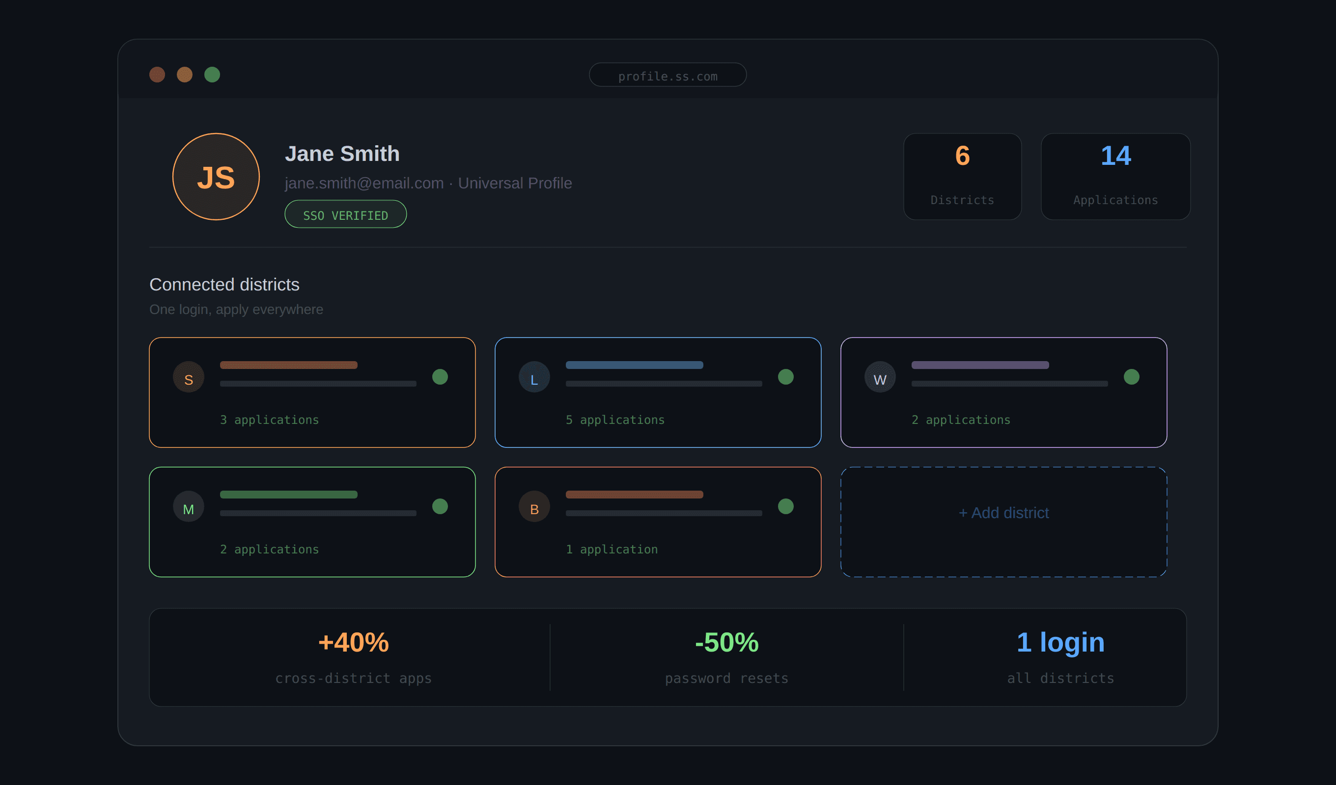 Led the migration from siloed district logins to a centralized SSO architecture using Auth0 — enabling a Universal Candidate Profile that increased cross-district applications by 40% and cut password-reset tickets in half.